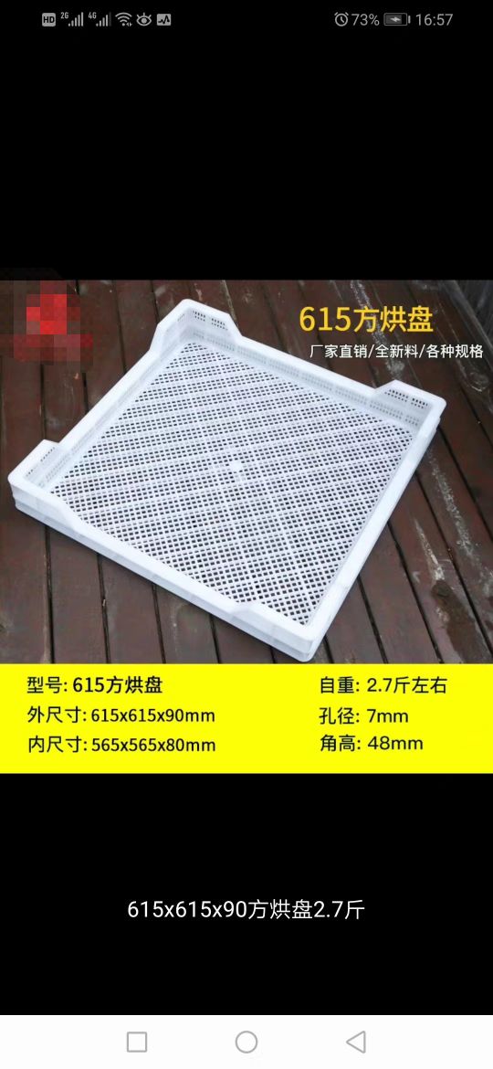 產(chǎn)品名稱:615塑料方烘盤(pán)